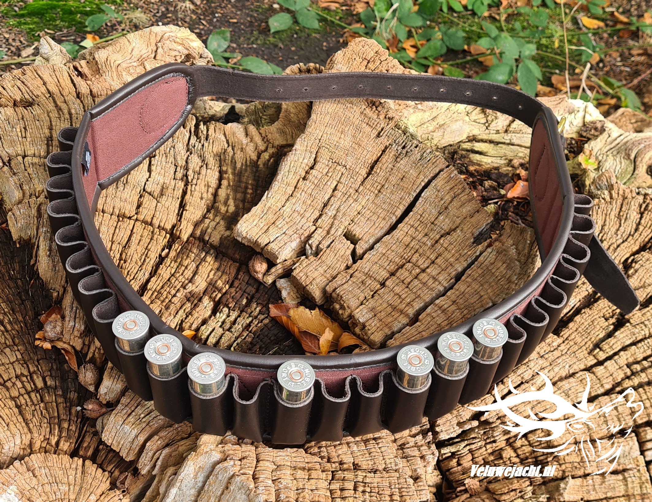 Ruimte voor 24 kaliber 12 patronen, de riem draagt prettig om uw middel.
