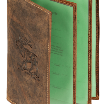 Onze hoogwaardige jachtakte map “Hert” is gemaakt van antiek leer.