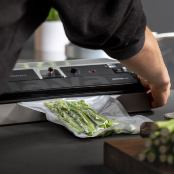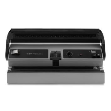 De professionele vacuümsealer V100 Premium X met een sealbandlengte van 340 mm wordt vooral gekenmerkt door de dubbele sealnaad en het standaard LCS- en LTP-systeem.
