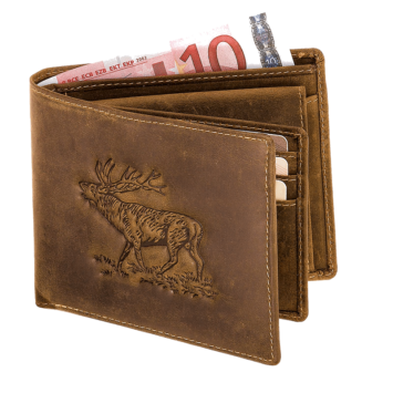 Portemonnee gemaakt van antiek leer, met fraai hert motief
