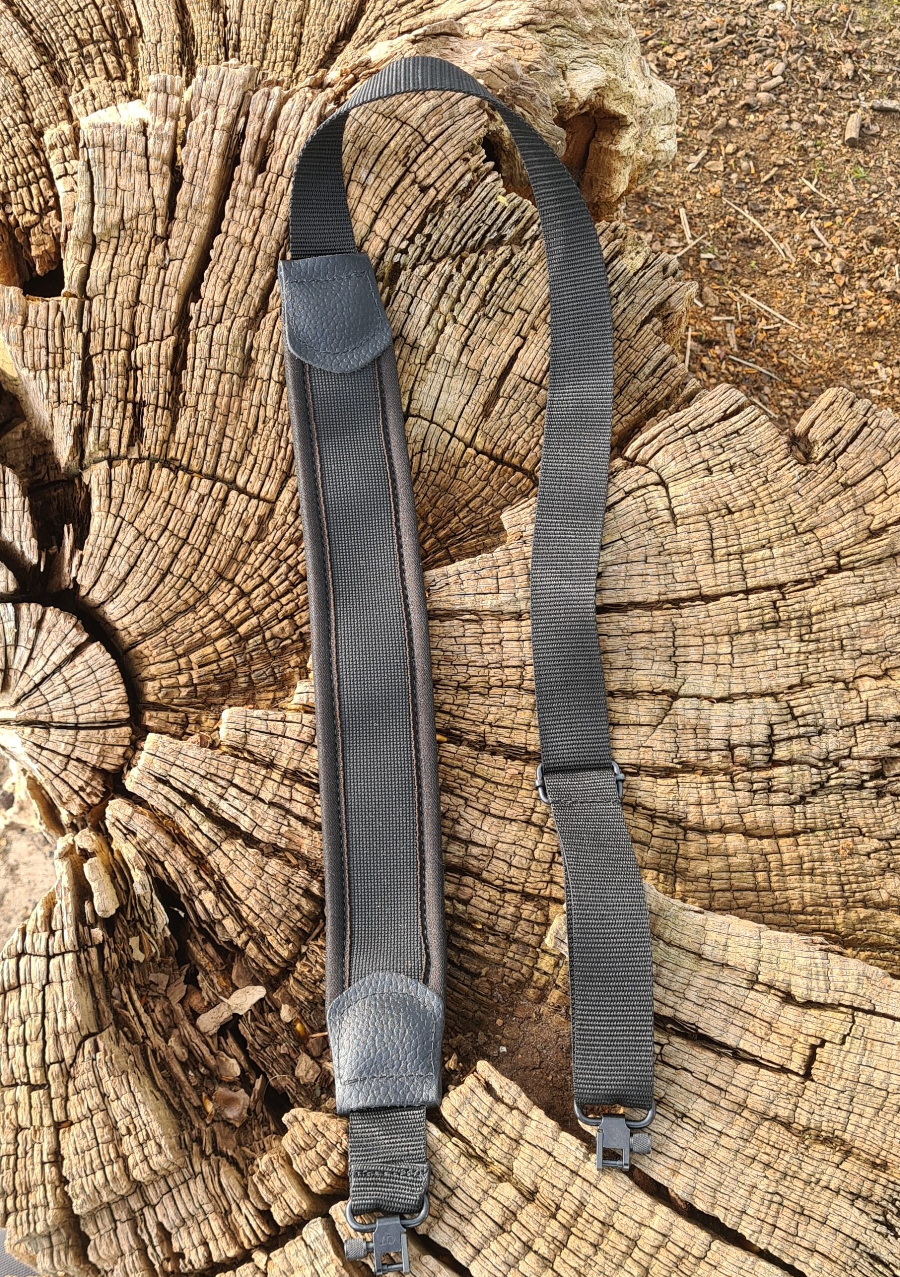 De achterzijde van de riem heeft een antislip pad, hiermee zal de het geweer niet gauw van de schouder afzakken.