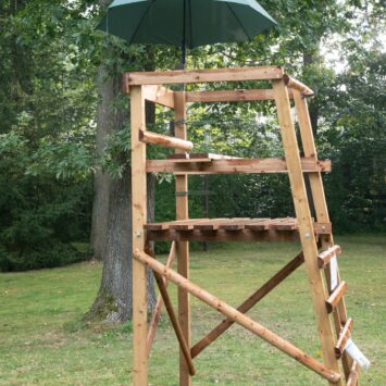 Paraplu jachtscherm XL maakt indruk met zijn grote diameter en praktische eigenschappen die het de ideale metgezel maken voor regenachtige en zonnige jachtpartijen. Naast de flexibiliteit van het frame bij sterke windvlagen, biedt het ook bescherming tegen de hitte met een zonbeschermingsfactor van 50+. Hij kan gemakkelijk in de grond worden bevestigd met de punt aan de onderste stok. Met de bijgeleverde twee universele riemen kan het Paraplu jachtscherm XL aan de kansel worden vastgesnoerd
